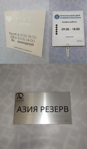 Таблички и знаки - это эффективный способ выделить ваш бизнес. Изготовленные из высококачественных материалов, таких как алюминий или акрил, они обеспечивают прочность и долговечность. Стильный и профессиональный дизайн табличек подчеркивает серьезность вашего бренда. Мы предлагаем широкий выбор стилей, размеров и цветов, чтобы соответствовать вашим уникальным требованиям. Наши знаки могут быть оборудованы яркой подсветкой или легко заметными цветами, привлекая внимание к вашему месту. Индивидуальный дизайн и возможность интеграции логотипов делают наши таблички и знаки идеальным инструментом для успешной рекламы и брендинга вашего бизнеса